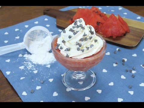 Sicilian Watermelon Pudding }}- Soft, refreshing and delicious. This recipe is perfect for summer! INGREDIENTS watermelon 650g corn starch 60g powdered sugar 70g whipped cream ...