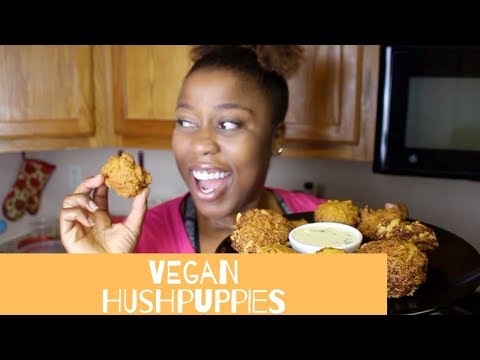 Vegan Hushpuppies 🍘 Episode 126 - Eggless Hush Puppies Recipe - only a few days left to win $100! Cant wait to see you alls recipes! Here is how I made my vegan hushpuppies: 1and 1/8 cup of cornmeal 1/2 cup flour s/p to taste ...