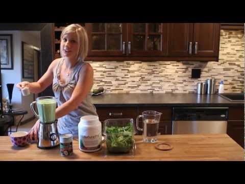 Spinach Chocolate Protein Smoothie }}- Jenny makes an amazing spinach and chocolate smoothie. Ingredients: - Coconut Milk (Organic) - Nature Pro Protein Powder - Spinach - 5-6 Ice Cubes - Water ...