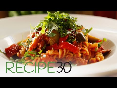 Mediterranean Spiral Pasta, vegetarian with Feta cheese, egg plant and bell pepper - Red Pepper Feta Pasta - Get full recipe here http://www.recipe30.com Want to post me something? Need a shoutout? Got a product to be reviewed or used on my cooking videos?